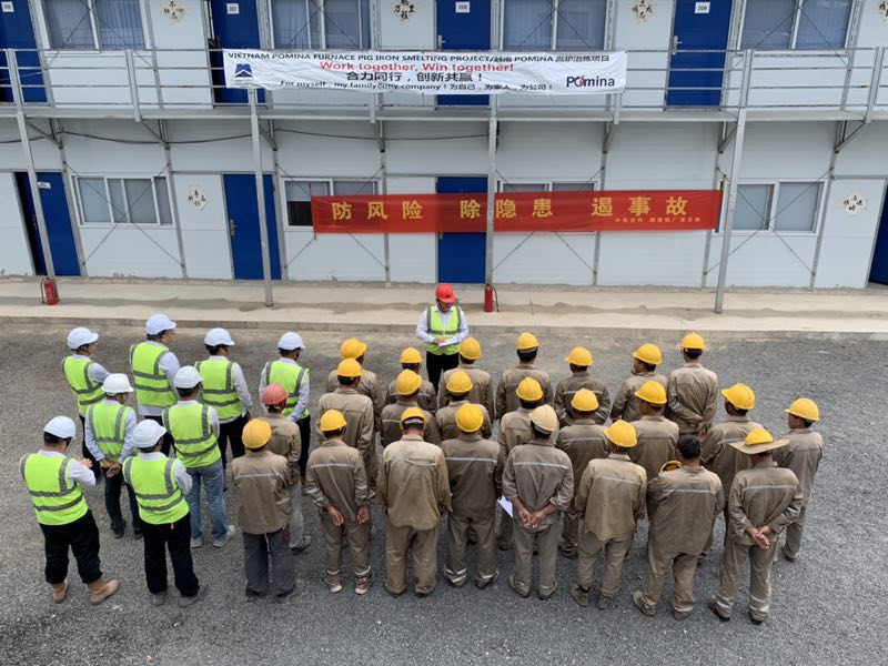 6月3日下午, 中機(jī)合作越南鐵廠項(xiàng)目部在越南項(xiàng)目所在地也舉行了宣誓和簽字儀式。