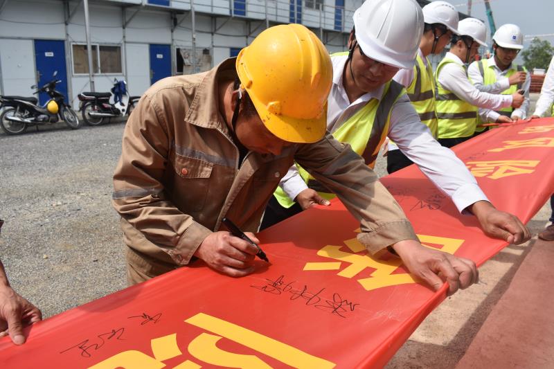 隨后參加安全宣誓人員在啟動(dòng)儀式條幅上進(jìn)行簽字。